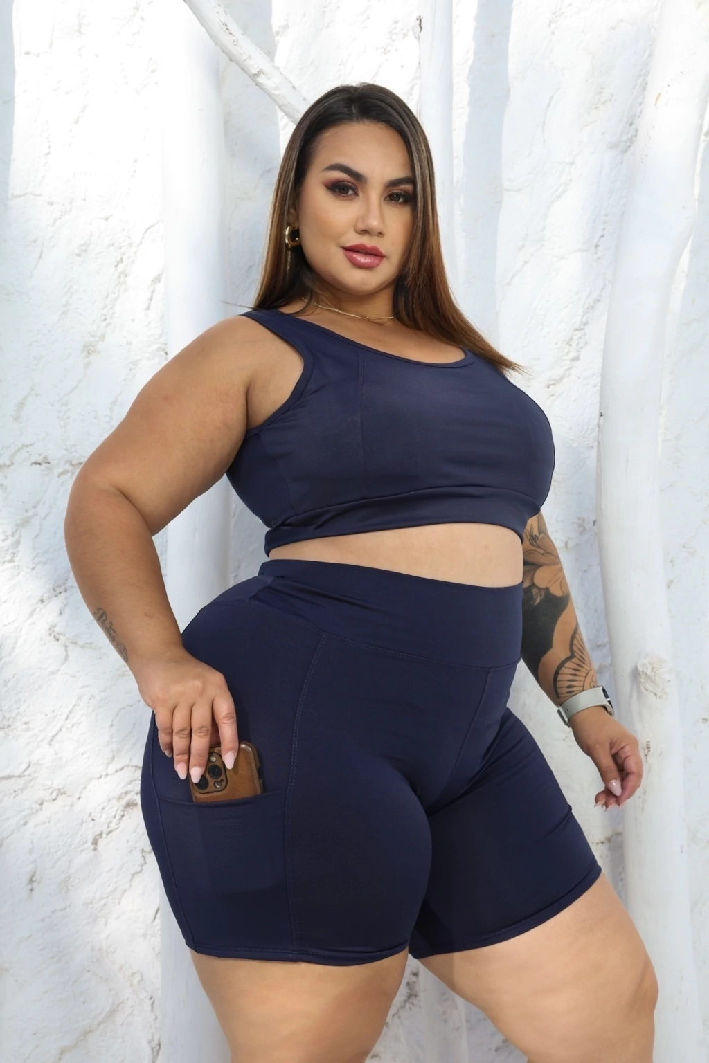 Bemuda com Bolso Plus Size - Suplex de Poliéster