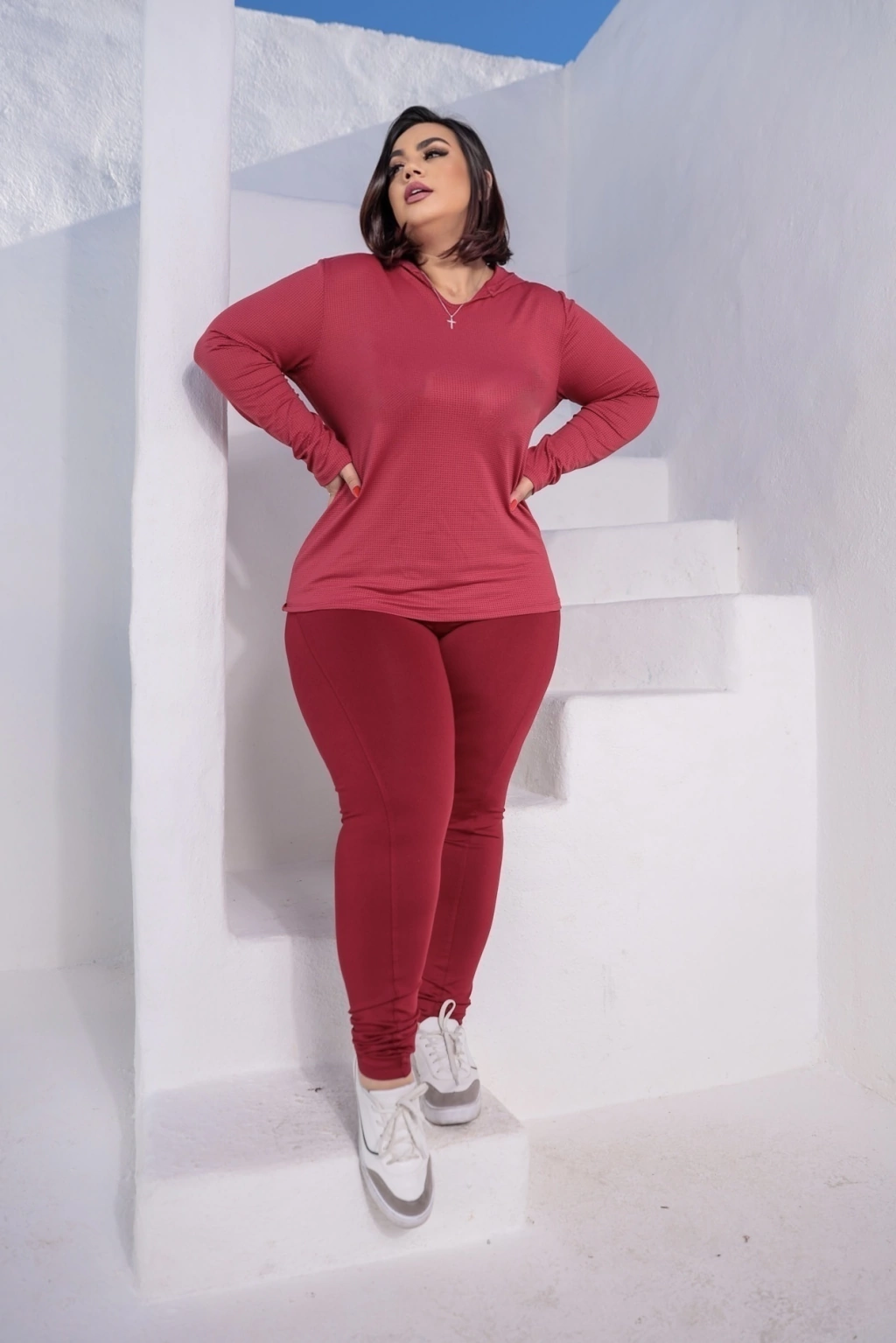 Camiseta Manga Longa com Capuz DryFit Poliamida Plus Size