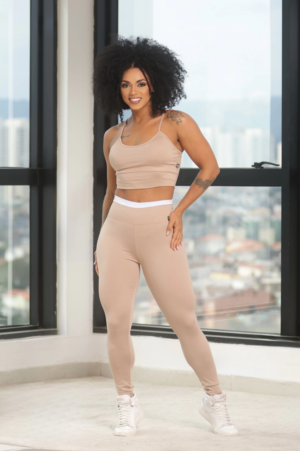 Conjunto Legging Básica e Top Franzido 3D Poliamida
